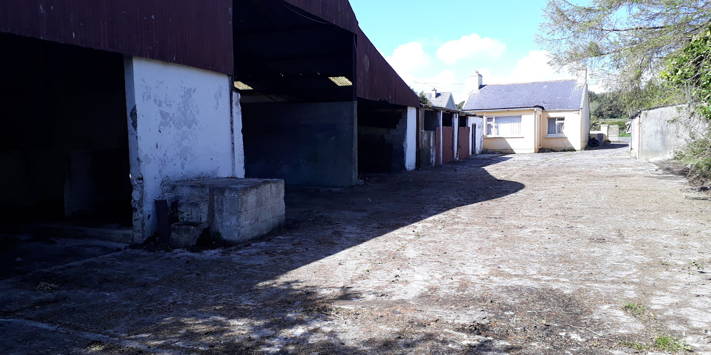 Old house on c. 4.5 acres with a number of old farm buildings. Lots of road frontage and only about 1 mile from Milltown village which is fast expanding, 2 new schools, shops, restaurants etc.