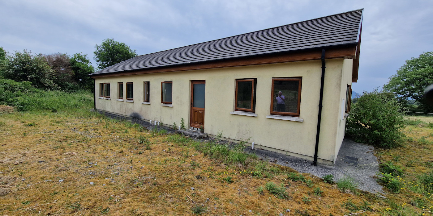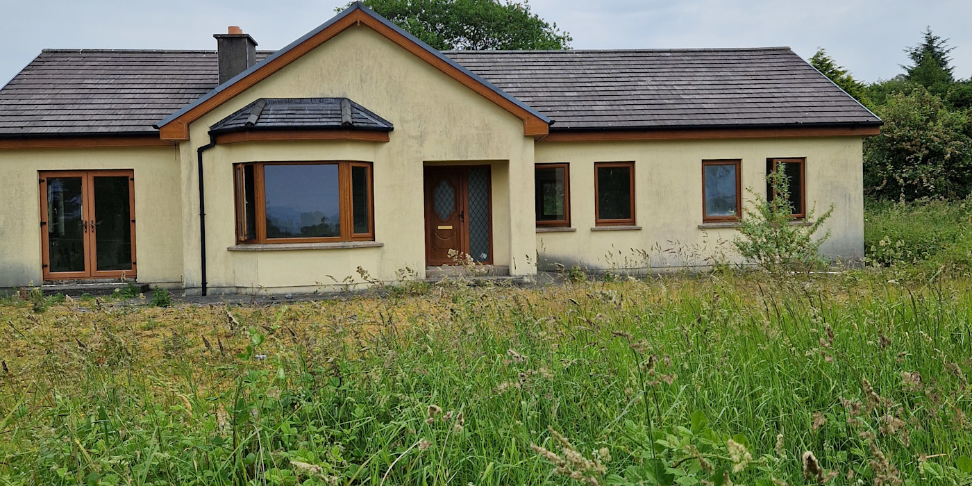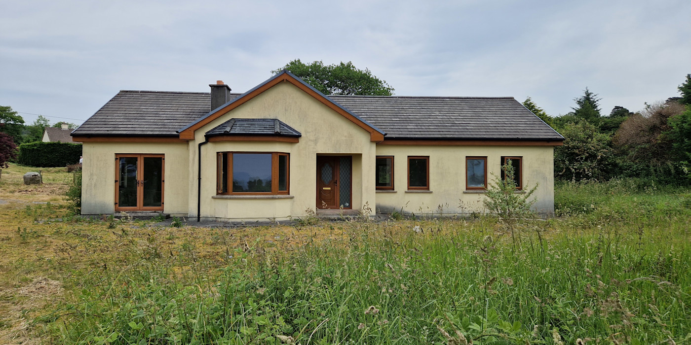 Building commenced about 10 years ago and never finished. It comprises c.1,450 sq.ft. divided into well proportioned rooms, porch, entrance hall and corridor, 4 Bedrooms, master en-suite, lounge, bathroom, kitchen-dining-living area with patio doors to the garden, utility room with w.c.