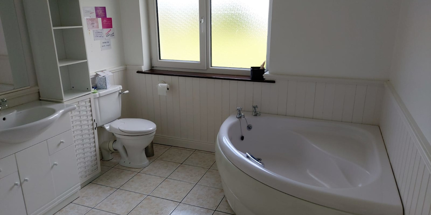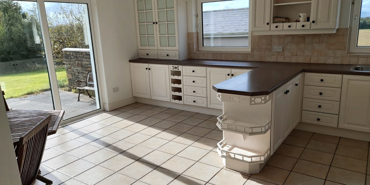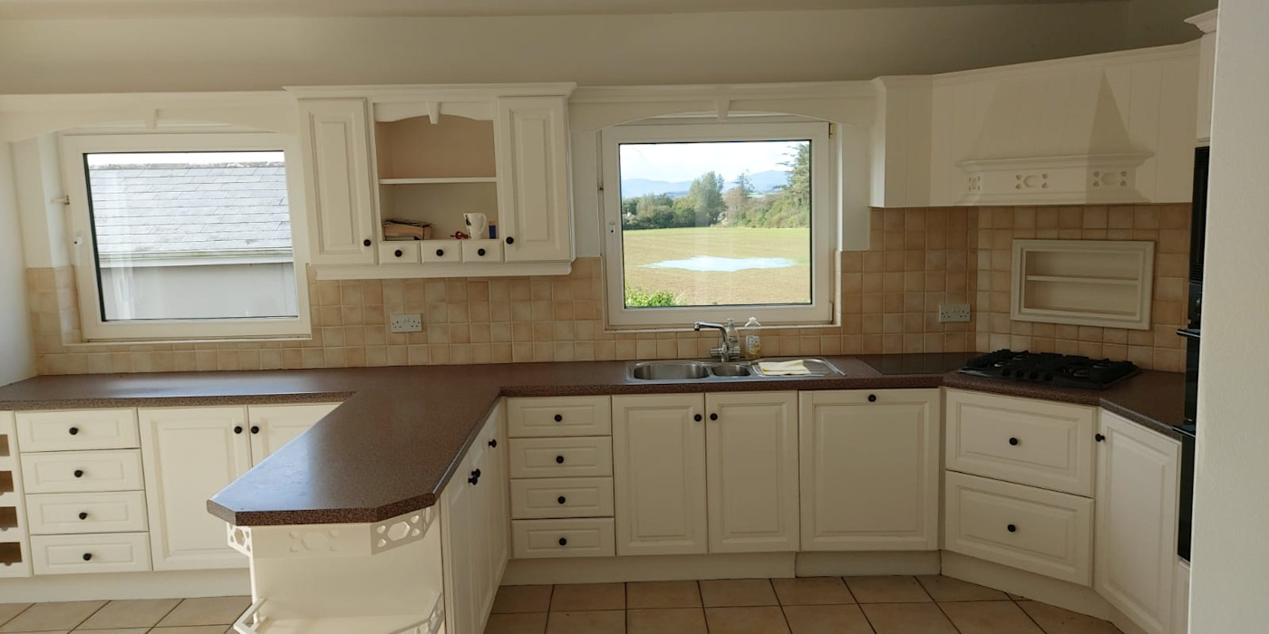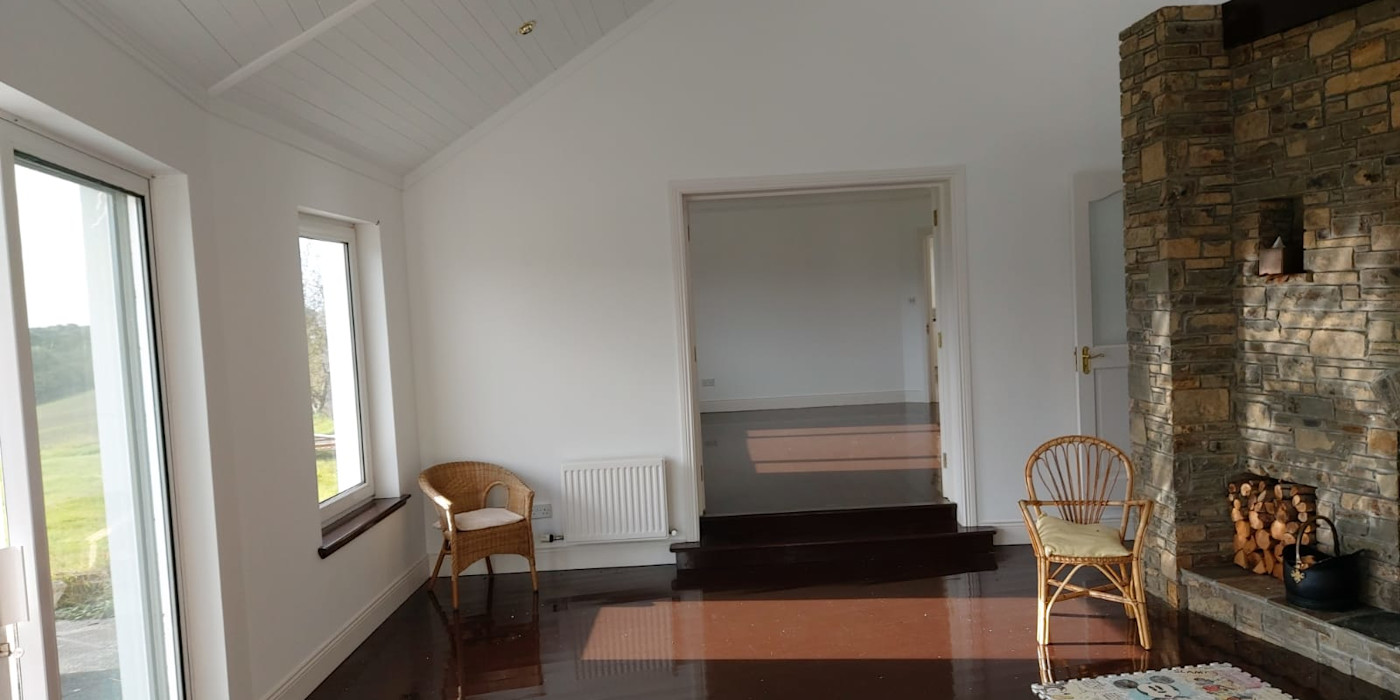 It is comprised of a very large welcoming hall with a fireplace and stairs. A very large fully fitted kitchen with a dining area and patio doors, large utility, large dining-room, large lounge with patio doors and an open fireplace with a solid fuel stove. There are 4 very large double bedrooms downstairs, all with big en-suites. There is a big bathroom downstairs with a jacuzzi bath. Downstairs also has an office . There is further accommodation upstairs if required. It has oil fired C/H with double glazed PVC windows and doors.