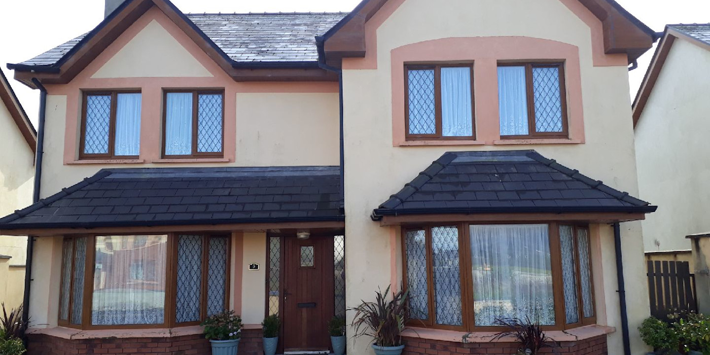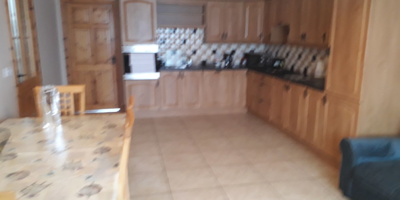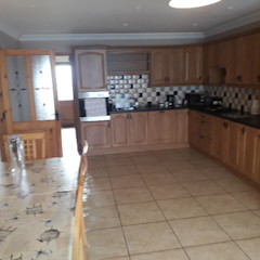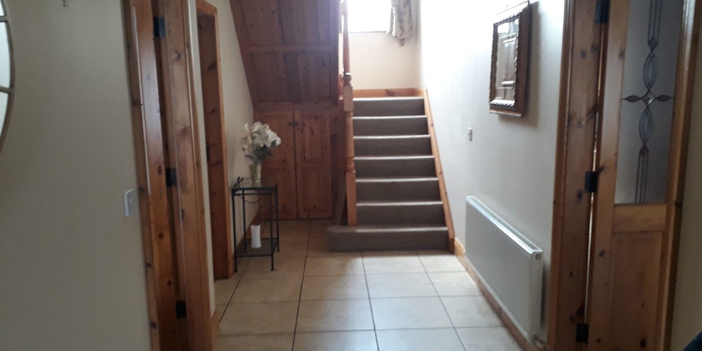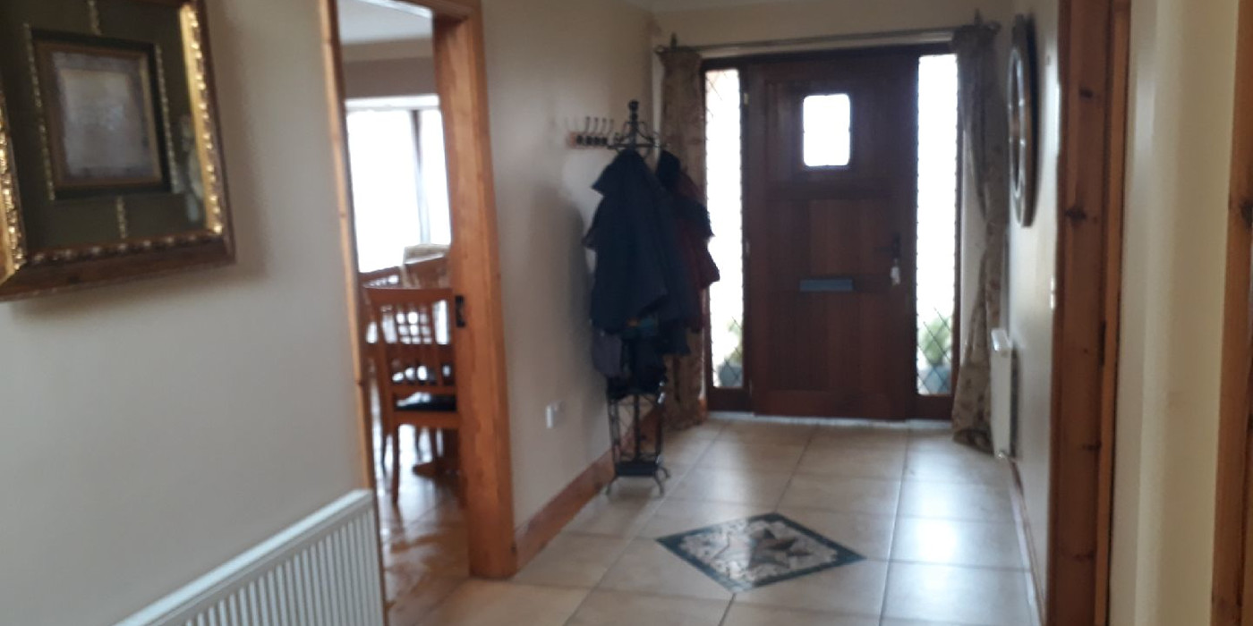 Comprising of a wide and bright entrance hallway with decorative timber stairs, very large window giving great natural light to the entrance and stairs. 5 bedrooms. master ensuite with a walk-in-wardrobe. 4 large double bedrooms and 1 single. 1 downstairs bedroom. Nice mountain views from the front bedrooms. Lounge facing the mountains with bay- type window and ornate fireplace, amazing kitchen/dining with large living area, lots of natural light with bay-window, generous amount of solid timber cupboards. fully fitted. spacious utility room with fitted units, downstairs w/c, spacious. walk-in-hotpress.